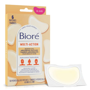Bioré Multi-Action Patches are extra large to use on any problem areas to help heal cluster breakouts or absorb oil in the T-Zone. Made with medical grade & plant-based hydrocolloid, these ultra-thin blemish patches are great for all skin tones and can be worn day or night. They provide a protective barrier from dirt, bacteria and picking while working like a sponge to absorb pus & oil, for visible results.