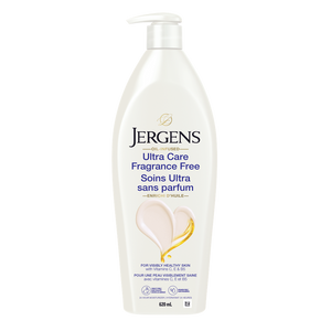 Jergens Ultra Care Fragrance Free Moisturizer gives your skin just what it wants, and nothing you don't. This nourishing oil blend formula is infused with Vitamins C and B5, and deeply hydrates skin without any added perfumes.