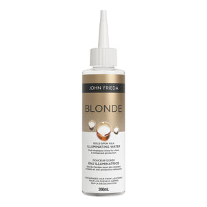 • For best results, use Blonde Gold Spun Silk Illuminating Water with any of the John Frieda haircare Blonde Collections – Violet Crush, Go Blonder, Blonde+ Repair, or Highlight Activating collections which each include shampoo, conditioner and treatment options for your blonde haircare needs