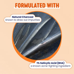 Skin acting up? Meet Charcoal. Our daily charcoal acne cleanser contains Salicylic Acid to help fight oily skin and acne. Salicylic Acid cleansers help deep clean and penetrate pores to absorb oil and help stop breakouts for clearer skin in just 2 days.